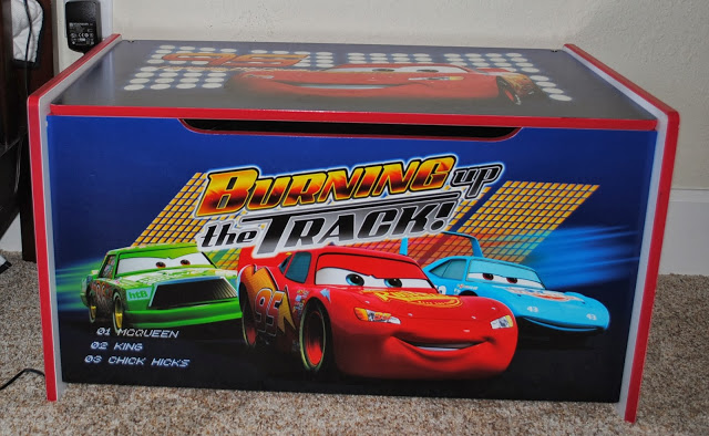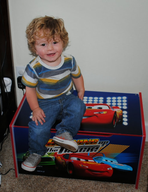 Braydon absolutely loves his new Cars toy box, also from Delta Children, all hew wants to do is take toys out of it and throw them back in it as hard as he can! (such a boy)