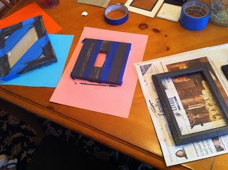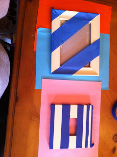 I let the frames dry for a few hours (actually over night, but that isn’t necessary) and then used painters tape to give them a design.