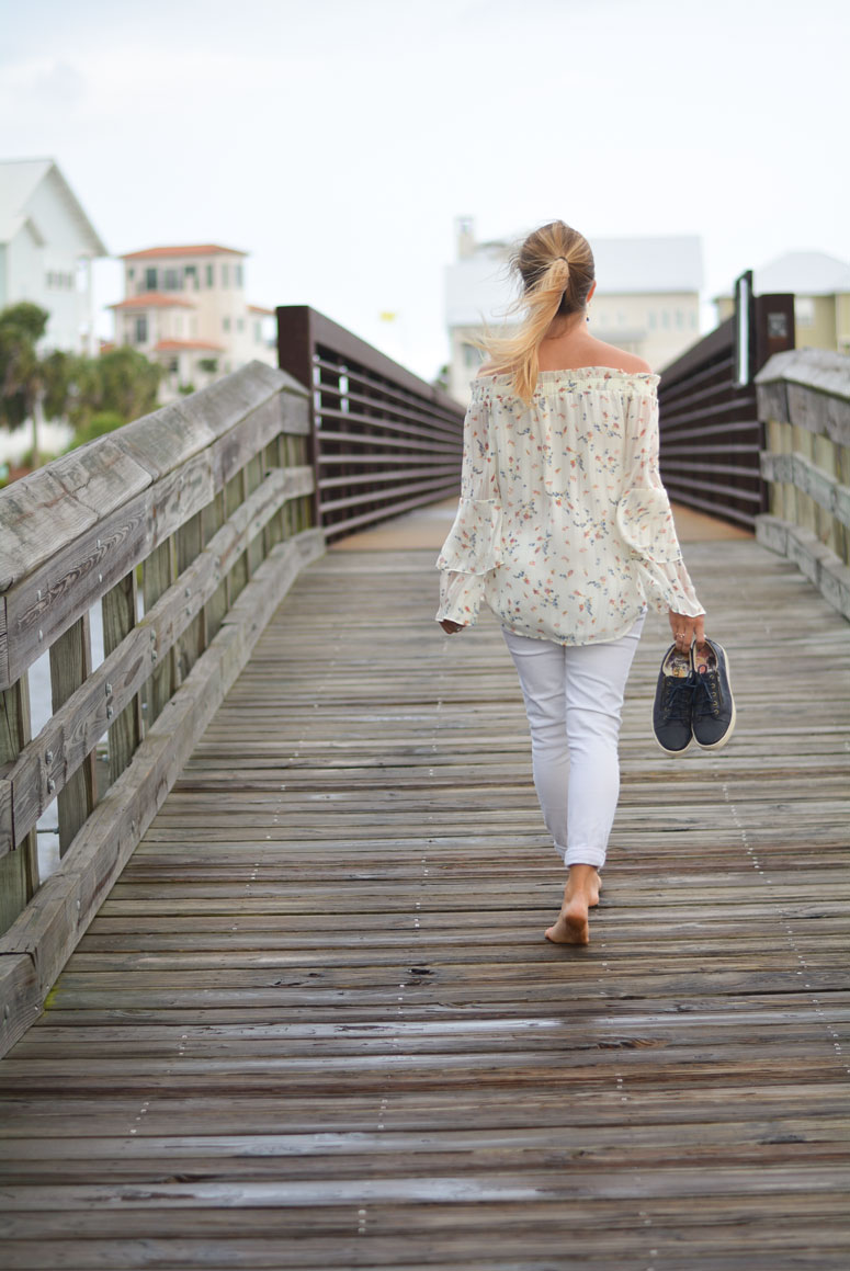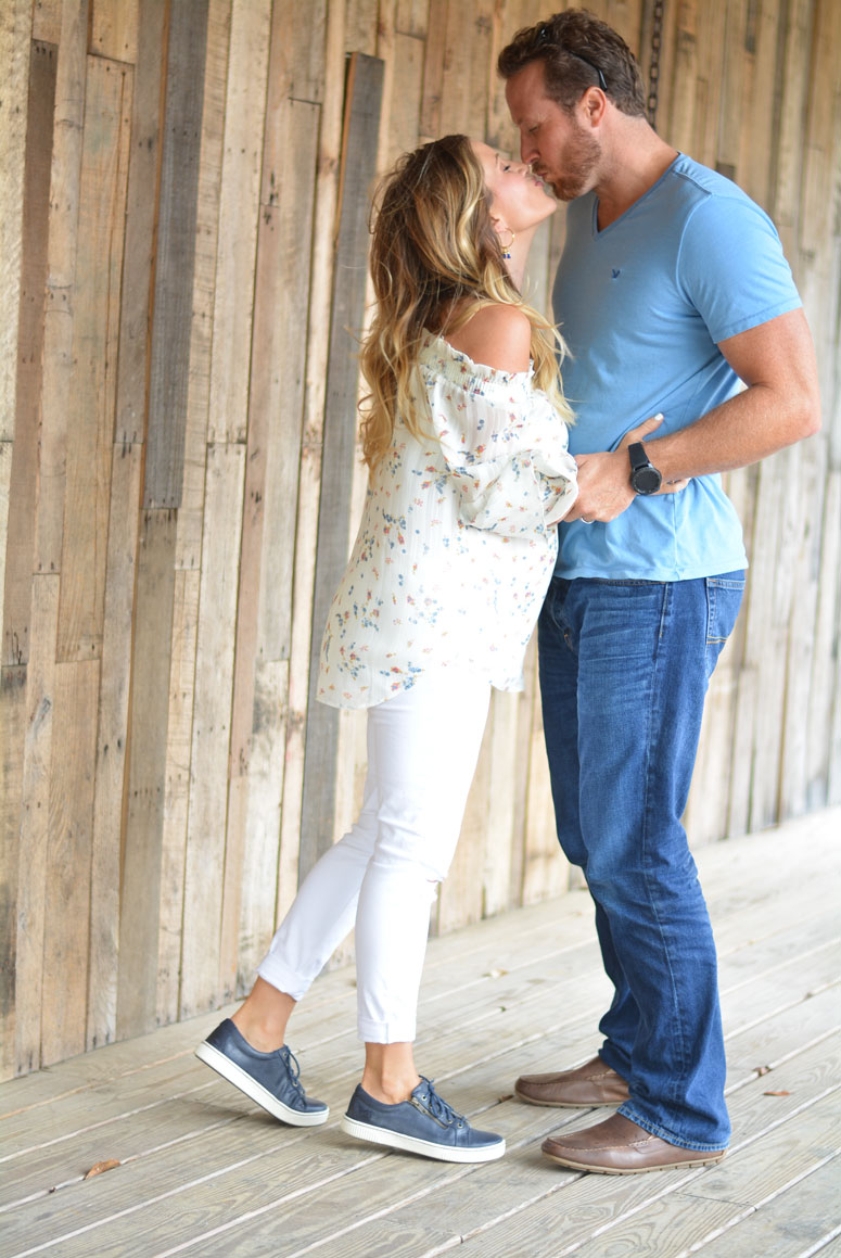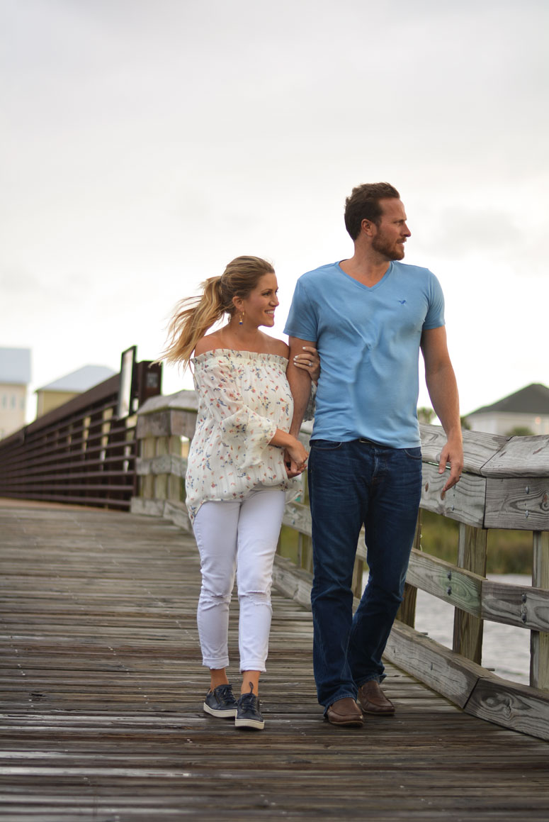 On our most recent night out, the weather was actually quite comical – the wind was insane and their was a constant light drizzle and mist in the air that was just enough to RUIN my hair, but I honestly didn’t even care. We decided to dress comfortable and just relax. I recently ordered us new casual yet extremely comfortable Born shoes from Dillards for nights like these. For myself I wanted a casual and comfortable pair of sneakers but that didn’t look like running shoes, and for Ryan I was looking for a comfortable pair of slip on loafers that he could wear with shorts but also with jeans that could also double for dress shoes on dressier nights near the beach. These both are also great because we do not need to wear socks with them so we can slip them off and on easily when walking through the sand. You’ll also appreciate the rubber soles that will grip to the ground more than a traditional leather bottom; allowing you to move dynamically on pool decks or wet surfaces which is great for us around the beach.