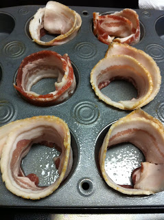 3. Wrap each piece of bacon inside of each muffin cup.
