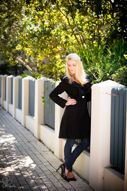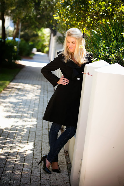 Everyone needs a go-to black coat. One that you can wear with jeans, a dress, a skirt or tights. I love the ruffles on this coat with the sweet little white flower button on the front. It makes it not seem quite as stiff as some pea coats appear. I love how girlie but yet so simple this outfit is..easy outfit you could wear to lunch, dinner party or even the park!