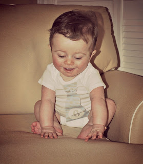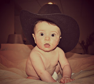 Braydon is 6 months old..HOLY COW!!!! in Style on 08/01/13 a little prunes left on the face.. 🙂 my little cowboy future southern gentleman
