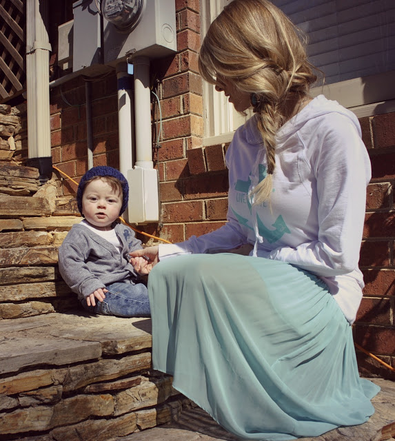 He is SO precious! I love his hat and cardigan! Plus your hair is so adorable too! I can't wait for mine to get longer so I can pull off a cute braid also!