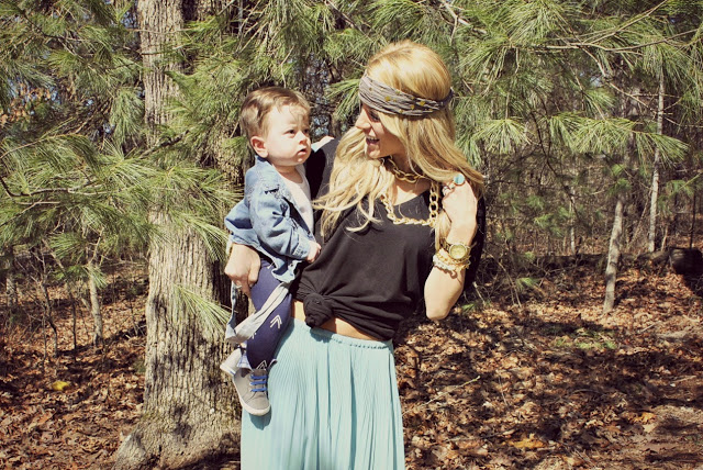 First, please look how long my little man’s hair is getting!! I am so dang excited!!!! I cant wait to see him crawling around on the beach this summer, and the breeze blowing his sweet little baby hair! Anyways, I have another giveaway for you guys!! This gorgeous turban with the pyramid studs I am wearing, is for one of you!!! It is from Bitchy Gypsy, and if you haven’t heard of them yet, go check out their website, their shipping is only 1$..seriously!!! I am craving their White Turban and their Painted Tribal Necklace! My blue and gold bracelet I am wearing is also from there!