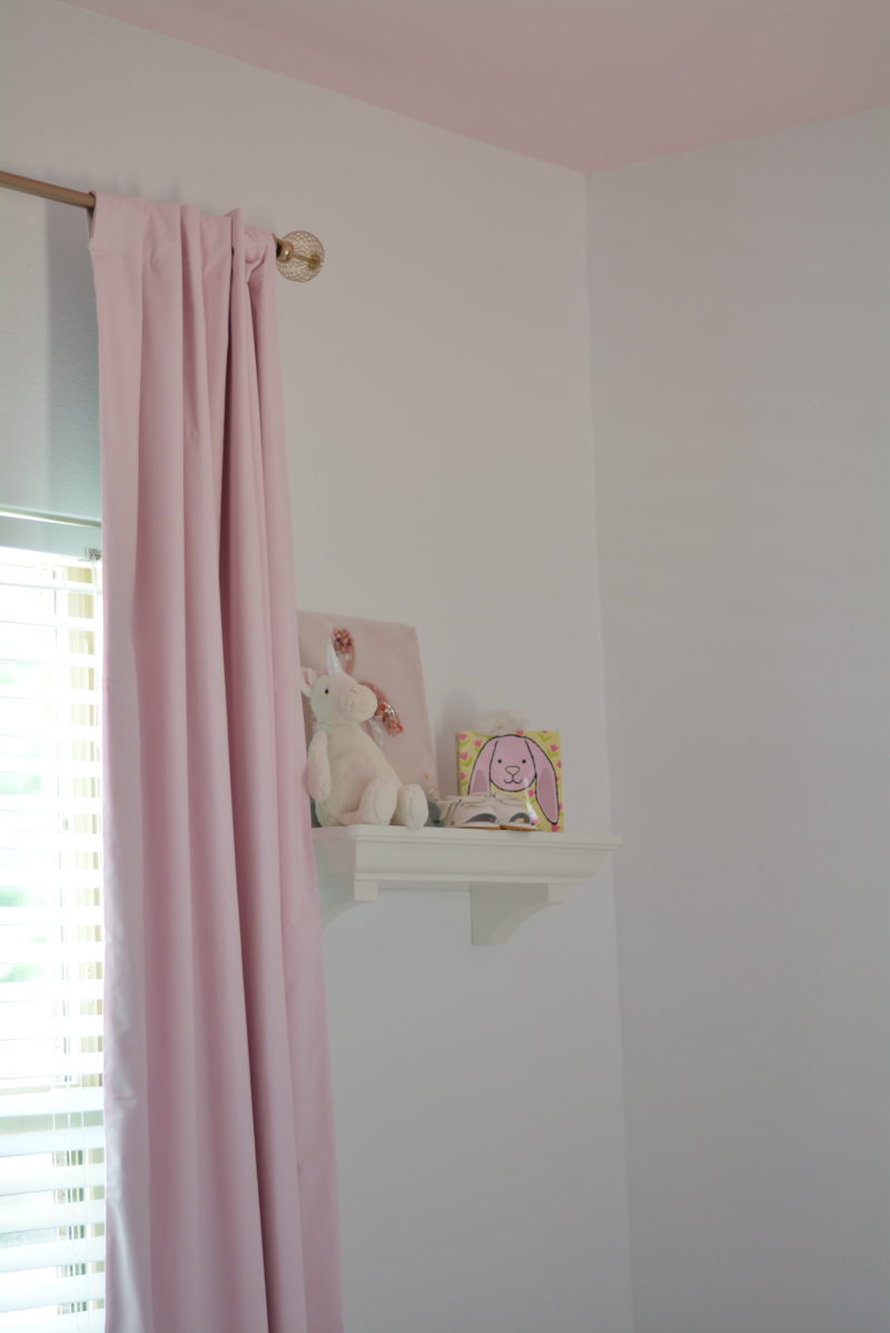 When designing Charli’s room I surfed and surfed pinterest and I must say – Pinterest usually ALWAYS has everything I am looking for, but this time, I just couldn’t find exactly what I wanted. That being said – I pretty much came up with the idea of painting her ceiling, trim and doors pink and her walls white instead of vice versa out of wanting her room to look extremely clean and bright, yet girly. Her walls are Extra White in eggshell finish (Harmony – fume free) by Sherwin Williams and her trim, doors and ceiling are Yours Truly 1317 Benjamin Moore in flat finish.