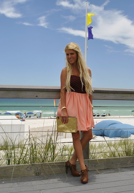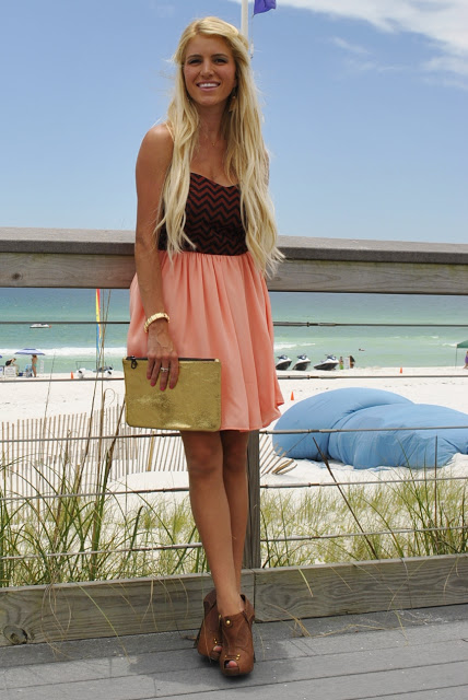 Dress: c/o Style Says Shop The Strapless Coral Chevron Dress