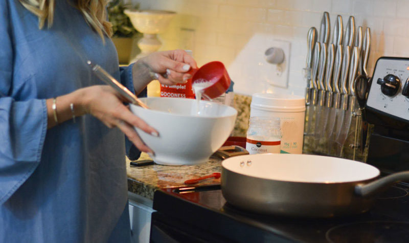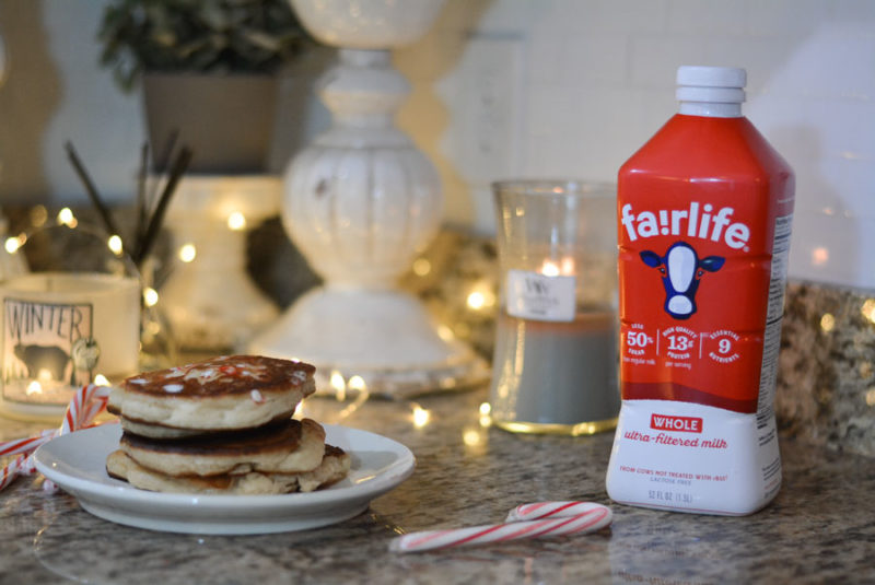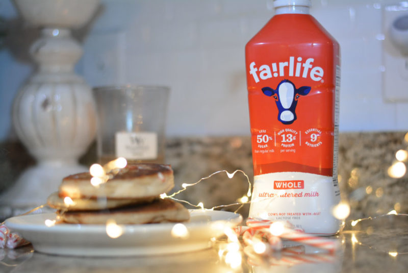 Pancakes are my absolute favorite breakfast in the entire world. Banana pancakes, chocolate chip pancakes, blueberry pancakes. You name it – I will devour them instantly! That being said, my biggest complaint about them is that they do not stick with me. About 45 minutes to an hour I am already getting hungry! I have found a substitute to fix this issue and also makes them even fluffier! Insert fairlife® whole Ultra-filtered milk. The reason I choose to use fairlife® whole Ultra-filtered Milk is because compared to regular or organic whole milk is for 3 reasons. It has more protein, less sugar and more calcium. I am talking 50% more protein. 13g of protein vs. the 8g for organic milk, and 7g and 1g other milks have and half the sugar!!! I actually talk about why we choose to always drink and use fairlife® Ultra-filtered milk in this post as well. Not to mention, the extra protein makes the pancakes actually stick with you!