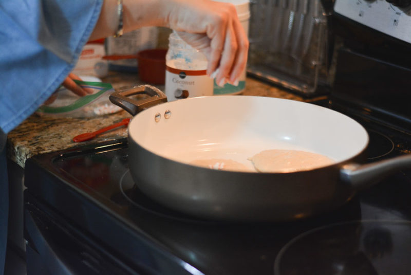 For Christmas I like to keep our food – well, Christmas themed. I love creating little memories for our children to look back on during the holidays. They get so excited when a normal pancake turns into a magical Christmas pancake that ‘Santa eats in the North Pole to get prepared to deliver all of the toys to boys and girls!’ This is where I came up with our peppermint protein pancakes! It was kind of a risk the first time I did it- had no clue how they were going to turn out. But everyone loved them so thankfully they stuck around!