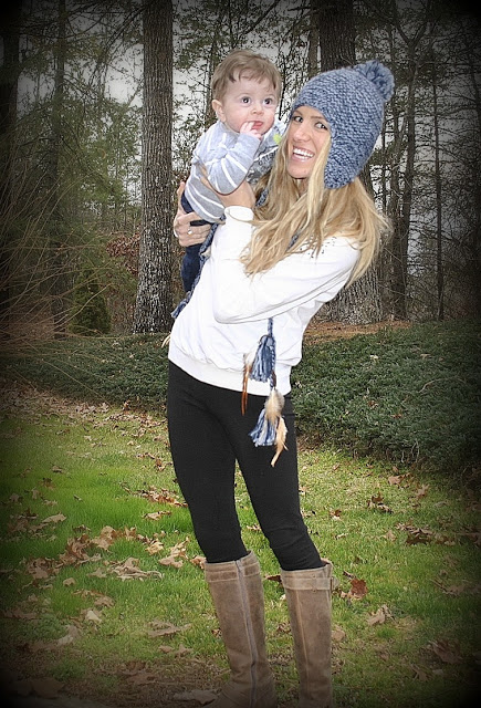 As a mom, I am always looking for ways to be comfortable enough to roll on the floor with Braydon but also run a few errands or to meet a girlfriend for lunch! All of the moms out there I know understand completely!! Oh, and please check out Braydon’s cheese in the first picture..oh and in the second..that is what happens when I say, give mommy a kiss…I get my entire face eaten and drooled on..I love every second of it! 🙂