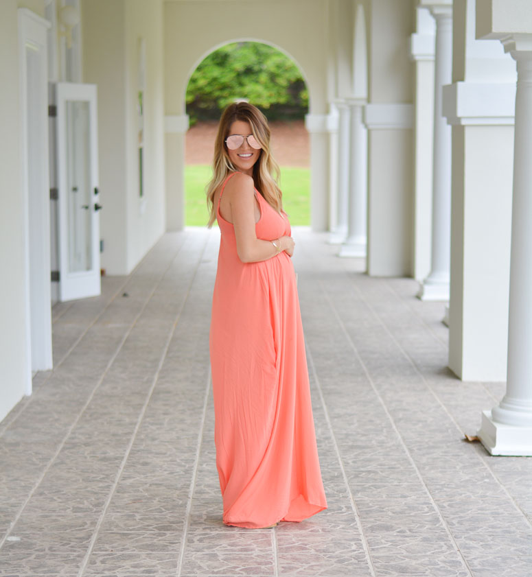 I may have gone a little over board on my online ordering of all things maxi dresses and spring but I am loving bright colors and all the feels of warm weather right now! I am also living in dresses – preferably maxi dresses at the moment since my legs are so white! Dresses are one of the only pieces that are still feeling comfortable over my growing belly!