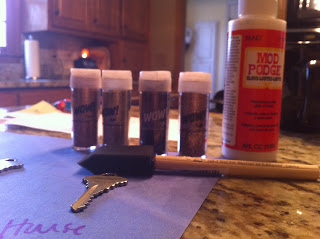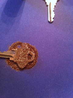 I then painted a small coat of Mod Podge over the key where I wanted the glitter to stick