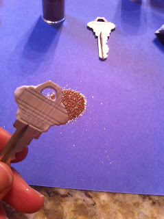 I dipped both sides of key where I had put the Mod Podge into the glitter.