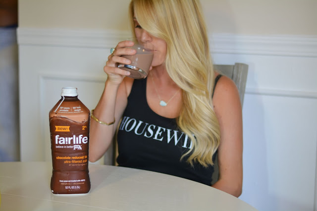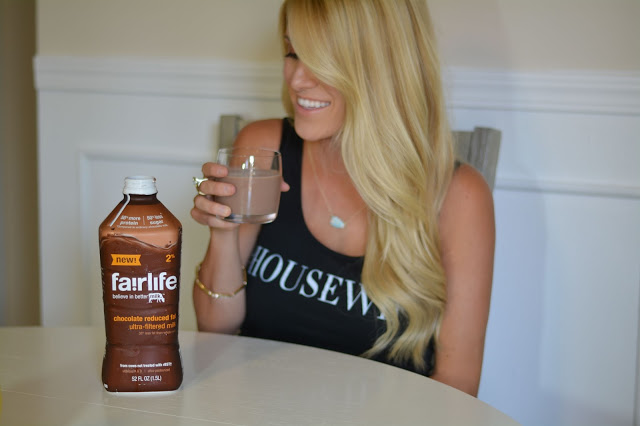 A little while back I told you guys how we had recently discovered fairlife. Well I am here to tell you we are still absolutely loving it and I buy three half gallons every week at the grocery store. Ryan uses the chocolate milk to mix in his protein drinks, and I still use the white milk for mine. I love the chocolate milk on its own because let me tell you guys, it is delicious and tastes just like a thin milkshake! The best part of fairlife tasting so delicious is that I am actually not breaking away from my healthy living lifestyle at all. It is healthy and contains more proteins and less sugar, helping me get the nutrition I need. How can you beat that?