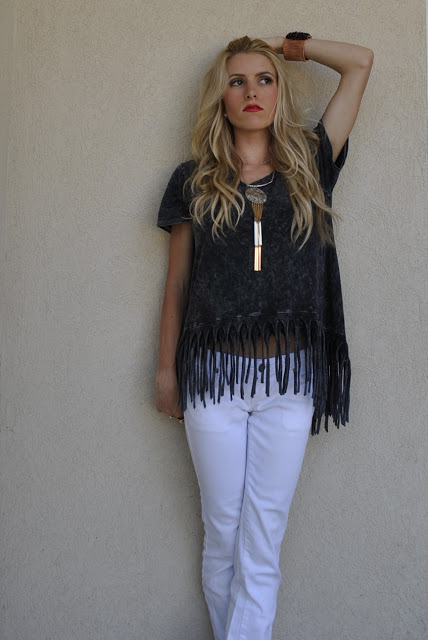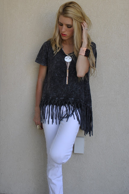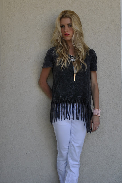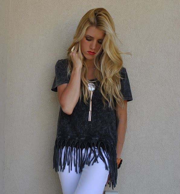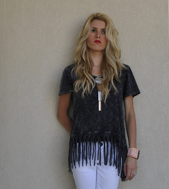 Anyways! I am SOOOO obsessed with this new fringe tee..it is lose and flowy so that I feel comfortable all day, but still very trendy!!! I love how the fringe on the shirt goes with the fringe of the necklace!!! It goes together perfect without being too matchy!!!