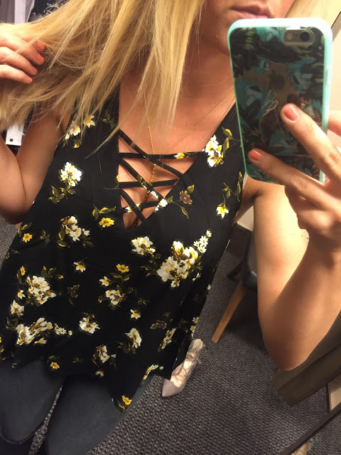 So, I got this floral top in a small. I am kinda second guessing myself and thinking I maybe should have gotten a medium though (it runs a little small). In this photo, I have on the small, and now looking at the pictures I feel like the chest area could be a little looser. I love the floral understated print and will be styling it under many leather jackets this fall. I am going to try it on when it arrives at the house and after I get back from LA and I will let you guys know on snapchat if I keep the small or exchange it for a medium!