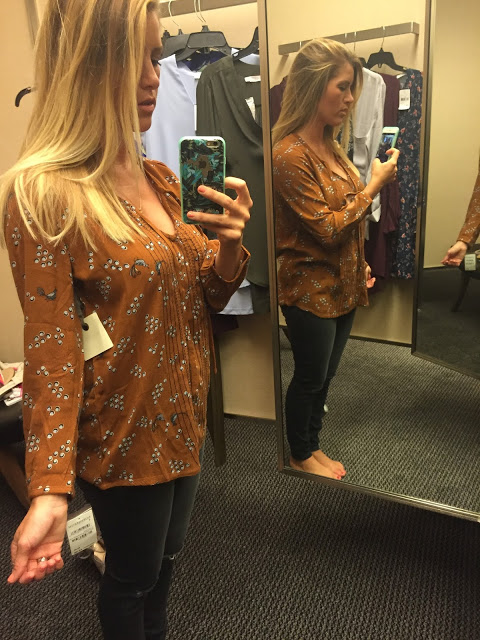I can’t tell you guys the last time I picked up a brown top and thought oh this is cute – I was actually shocked it even caught my eye but I actually really fell in love with this peasant blouse. It was fitted enough to avoid ‘frumpiness.’ If that is even a word. But also flowy, so soft and easy to wear. It has touches of black and ivory in it as well to make it easy to pull out your cute black booties or ivory sandals!