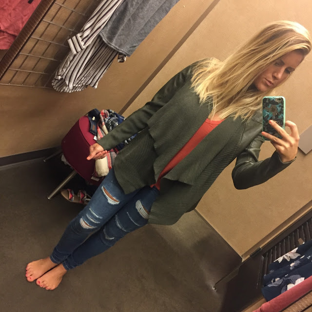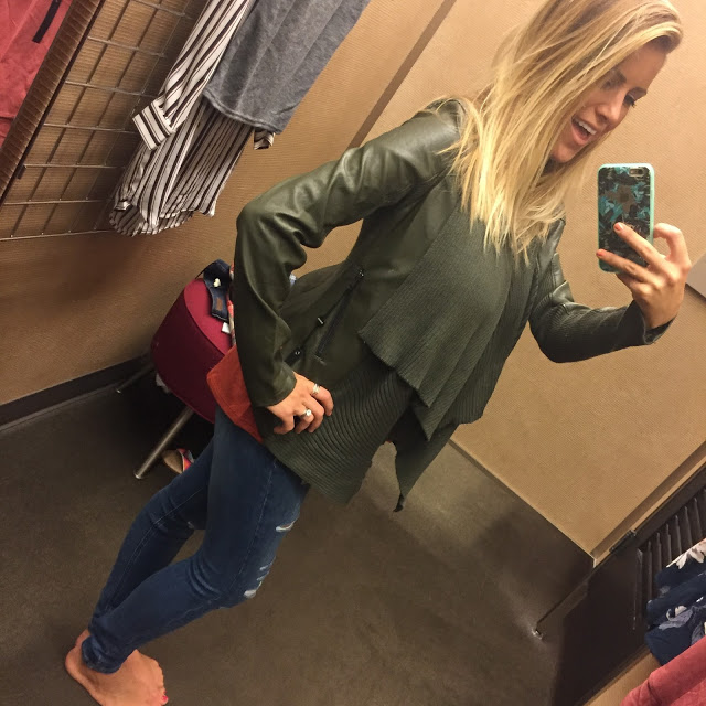 So, I also got this olive leather jacket with knit drape fabric on the front – even tho I live in Florida. I seriously just couldn’t pass it up and figured I can wear it this winter, and when I visit family and friends in NC and for NYFW! It is super comfortable and chic and the color is so perfect for this fall.