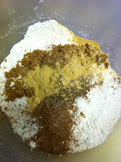 Preheat oven to 350 F. In large bowl stir together flour, brown sugar, cinnamon, ginger, salt, cloves, allspice, and cayenne if your using it. Mix and Stir until smooth.