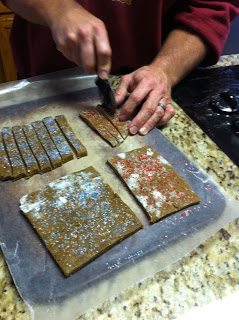 Use pizza cutter to cut 1/4 inch slices or smaller. The smaller the slice the crunchier the stick.