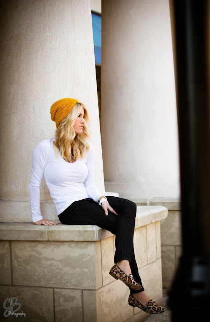 I love knit accessories for fall and winter. Something about them just makes me feel so cozy and comfortable! I love putting together such a simple outfit like jeans and the perfect long sleeve tee with printed flats and a beanie! It takes such a simple outfit and gives it an adorable edge!