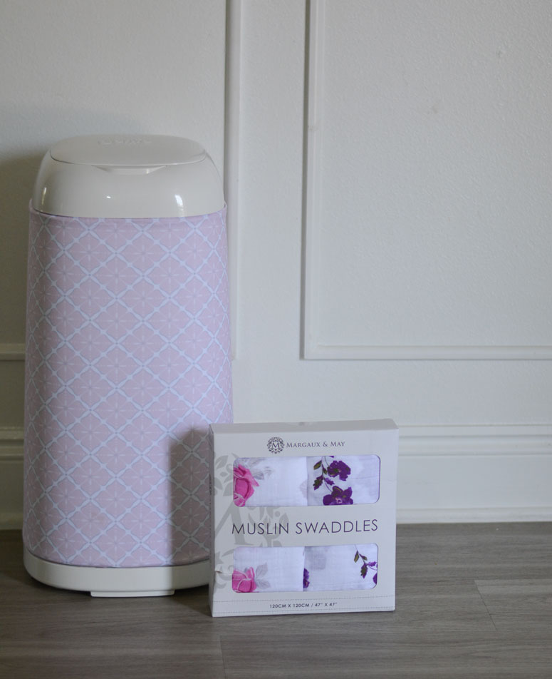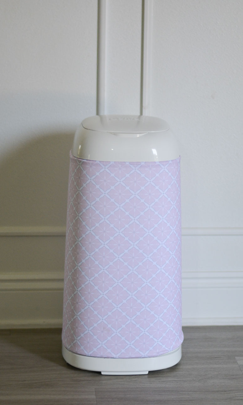 I was looking at my box of our new Diaper Genie we just got and noticed they also now have fabric covers to style your Diaper Genie closer to your nursery colors!! I loved that idea instead of the solid white this time so I decided to order the Pink Starburst pattern to go with our baby girls nursery! It just added a little bit of color and warmth to make it fit more softly into the nursery!