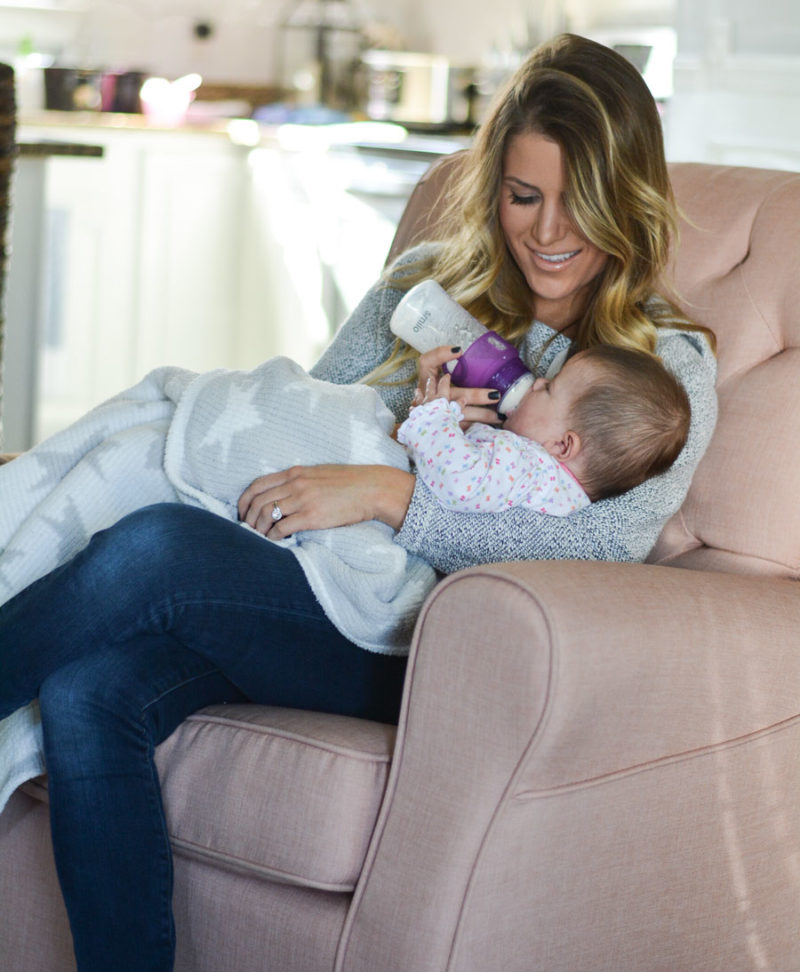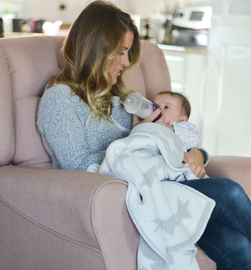 Onto the bottles. The Smilo feeding nipple and venting system work together to provide an uninterrupted flow of liquid that is most similar to breastfeeding to keep little tummies happy. The proprietary feeding nipple has two patents and provides less suction for easier latching thanks to a mom-like milk duct which reduces air intake by up to 44% (compared to other brands), and helps to fend off issues like colic, gas and ear infections. It was also designed with leak-resistant venting (all mom’s know how great that is) and an easy grip sleeve for one-handed feeding.