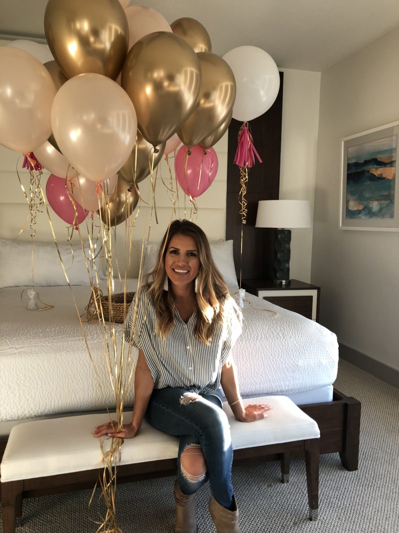 This was our third time staying at The Pointe. It is kind of like our little oasis away from home, while still being home! We also spent a family weekend there and our baby moon there! So, if you can’t tell – we are huge fans of The Pointe. I also talk about it here on my 30a Travel Guide! We checked in on Friday – everyone got off work just a little early so we could get there before dark. When we arrived, my sweet girlfriends had decorated the entire room and had the most delicious birthday cake waiting on me when I walked in. We headed up to the rooftop to watch the sunset. From the rooftop you can look over all of Rosemary Beach and all the way to Alys Beach. You can also see the sun setting over the water – it truly is gorgeous and if your ever in town and staying at The Pointe- make sure to head up there! (It is for hotel guest only, one of the perks)
