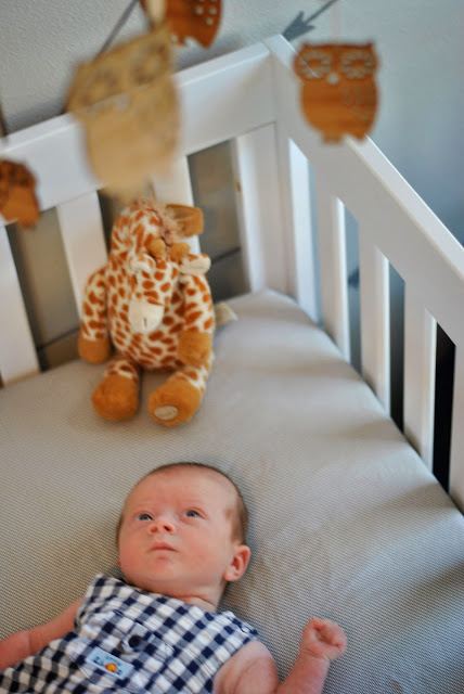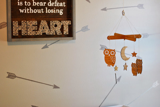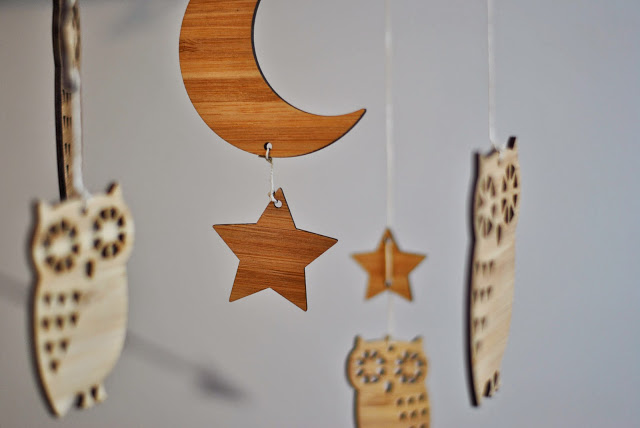 That woodland themed mobile is adorable–I love the owls. It pairs wonderfully with the nursery's decor.