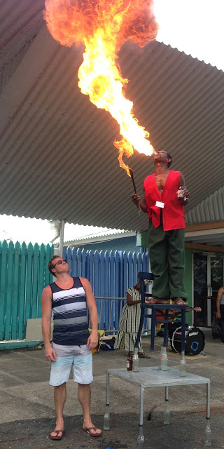 This guy was standing on all glass bottles and the chair was balancing on just three!
