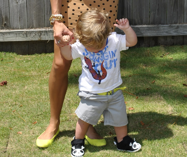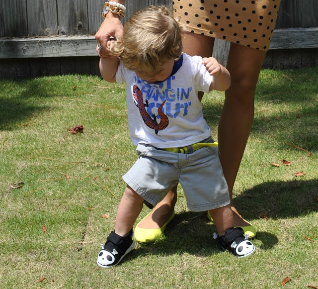 First off, I know, I know I say it all the time but oh my gosh! My baby boy doesn’t look like a baby any more! He looks like a little kid!!! Such a handsome one at that! Any he stood up on his own yesterday for the first time thanks to these awesome Yochi shoes!! I feel like it is only a matter of days before he is walking without holding mommies hand anymore!!! So bitter sweet!