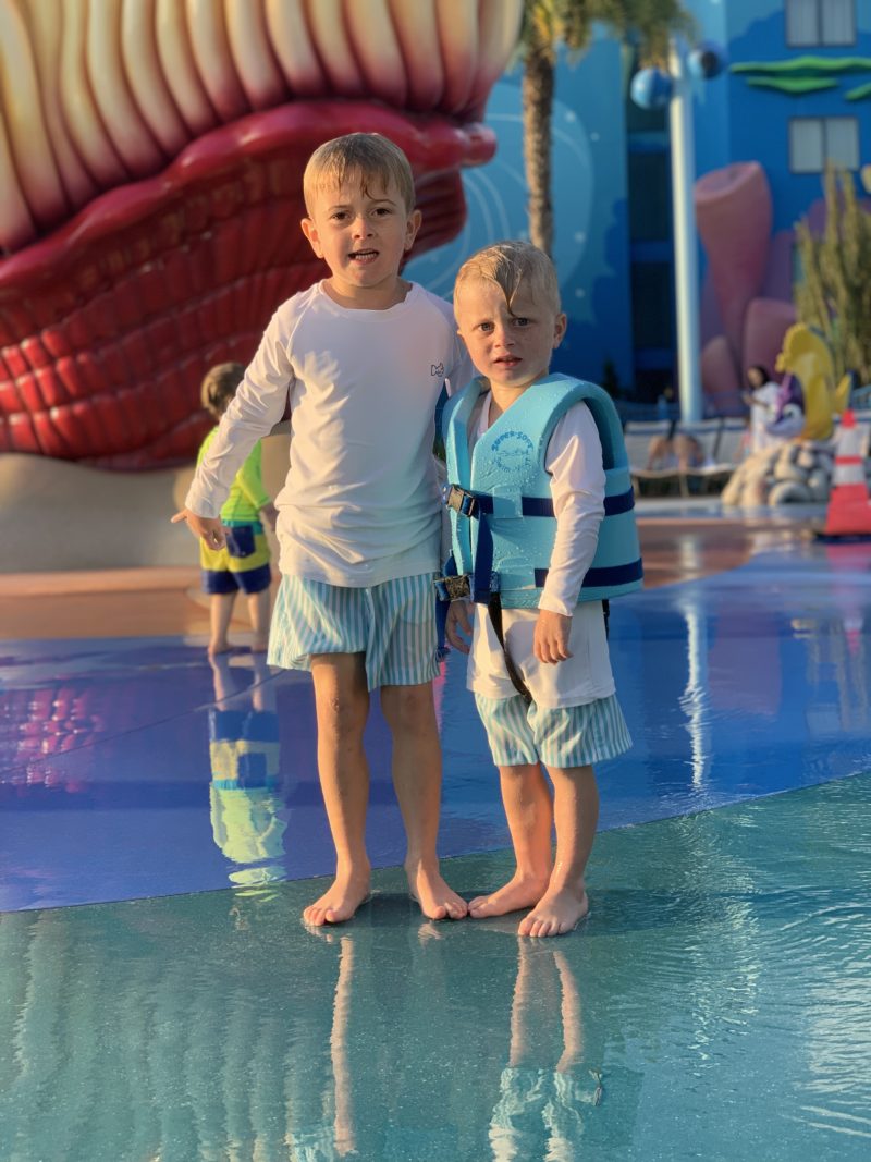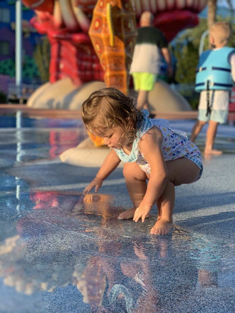 This was our first time staying at the Disney’s Art Of Animation Suites and we were more than impressed. This hotel was built for families with small children and has everything you can think of. On campus food, multiple pools, a splash pad, play ground, and is a kids dream as far as decor and themes. We stayed in the Car’s building and it was the cutest little suite. The beds, table, dresser, and even bathroom vanity were all aligned with the Car’s theme. The outside of the hotel felt as if you were walking through a movie set of Car’s which the kids also loved. There is also a Nemo building – which is where the splash pad and large pool are located. The kids especially loved the talking seagulls every time we walked to the pool.
