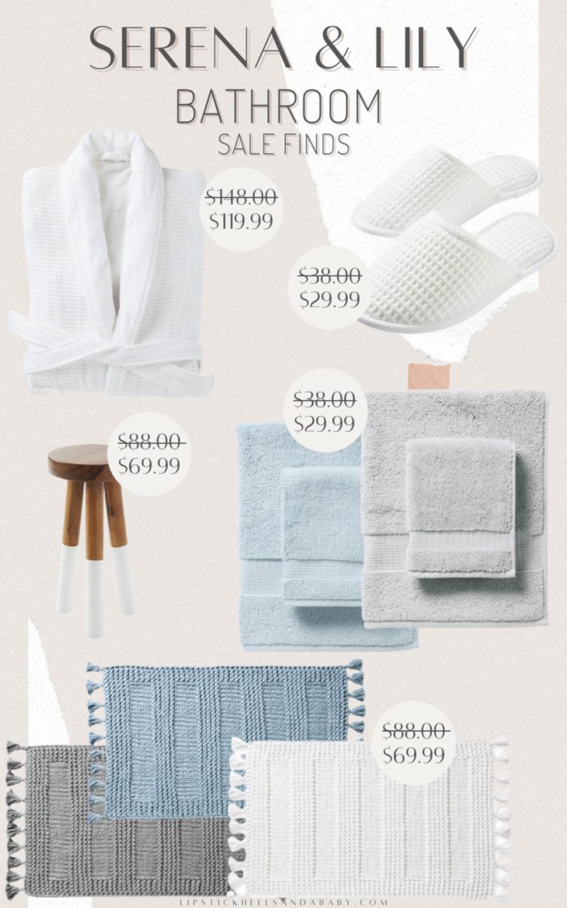 We have Serena & Lily throughout our entire home but a few of my favorites that I have that are in the sale are their towels, bath mats, robes and their adorable dip dyed stools! We actually currently have the stools in our bedroom, I grabbed a screen shot from my insta-stories from today and shared it below!