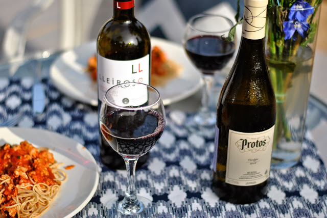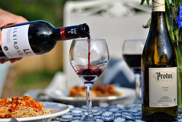 Ryan recently built a deck on the back of our house and we spend countless hours out there now! We love spending evenings outside when the sun is starting to set and its not quite as hot outside. Have dinner and a few drinks is what we are best at and we recently got the chance to try out Spanish Wines Ribera Del Duero y Rueda. I actually just recently found out I could drink wine again after having a bad allergic reaction several years ago, so I wouldn’t say I am a wine pro but I do know what wine is supposed to taste like and what I like and this wine was absolutely delicious. I can see how it would be very easy to drink the entire bottle at one sitting! I didn’t- but I wanted to! haha