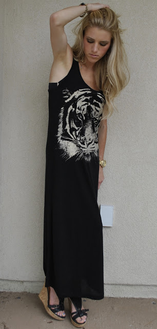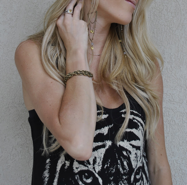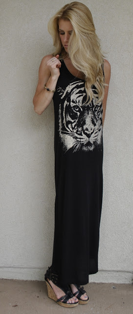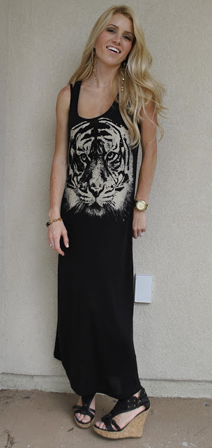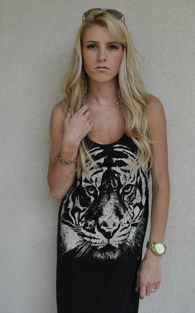 My look today is a little bohemian thanks to this beautiful jewelry from Animaux and dress from Forever 21! I love tigers right now, so when I saw this dress I knew I had to have it!!!! I have to wear wedges with it because I am only 5’2 and it is a little long on me, but all of you taller girls, it would work great on you with adorable flats!!!!